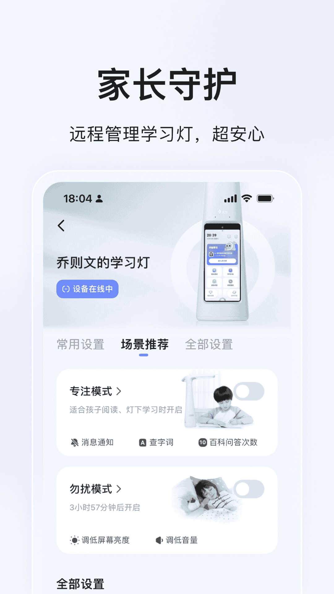 1、学习灯:远程管理孩子学习。
