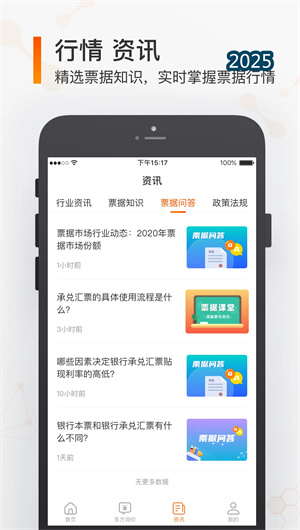 必知富App内置了强大的资讯中心,每日为用户提供精准详实的每日行情走势综述。该板块不仅涵盖宏观的经济动态,更深度聚焦于票据市场,通过贴现利率走势图和市场深度分析报告,帮助用户随时掌握贴现利率走势。系统运用大数据算法对海量信息进行清洗与整合,提炼出最具价值的行情预警与投资策略建议,赋能企业决策者能够基于实时、全面的市场数据,做出最明智的融资与资金规划决策,从而在变幻莫测的市场中抢占先机。