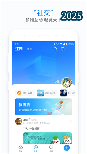 2. 作为创新的互动社交平台,115的江湖社区功能为用户提供了多元化的个人展示舞台。用户可以在此随时分享动态,发布图文并茂的内容,并通过热点资讯流获取最新信息。平台支持用户便捷地建立企业网站、个人博客或地方门户,利用社区管理后台进行成员与内容的管理。这种基于兴趣的社交连接机制,不仅促进了知识的共享与传播,如构建知识百科,更形成了一个充满活力的线上社群,让每个用户都能找到归属感并扩大其影响力。
