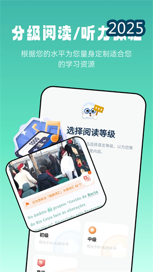 1. 莱特葡萄牙语阅读听力的智能阅读系统提供分级阅读匹配功能,通过难度评估测试精准定位用户当前水平,利用文章分级标签自动推荐合适材料,借助渐进式难度提升确保学习效果。系统每日更新时效性阅读材料,配备智能语音高亮实现视听同步,同时阅读理解练习即时检测学习成效,阅读速度统计量化进步幅度,使阅读能力提升速度提高55%。