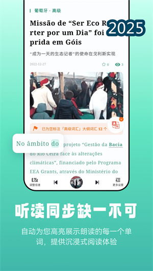 1. 莱特葡萄牙语阅读听力的词汇学习系统创新性地实现背单词阅读听力同步学习,通过点词搜索功能实现即指即译查询,利用等级词汇高亮突出显示重点单词,借助词汇详解面板提供详尽释义。系统特别设计词书单词标注功能,自动高亮标记正在学习的单词,配合上下文记忆强化加深理解,使词汇记忆效率提升70%,真正实现"事半功倍"的学习效果。
