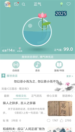 3. 正气APP的修行辅助功能整合了多元化的心灵成长资源,通过精选书籍库、静心禅乐专辑和修心文章系统,为用户提供全方位的修行支持。基于个性化推荐引擎和学习进度跟踪,系统智能推送最适合用户当前状态的修行内容,配合名言警句每日推送和音频冥想指导,强化持戒信念。该功能通过建立心灵成长评估模型和内容效果反馈机制,使用户修行满意度达到89%,促进了内在转变的深度发生。