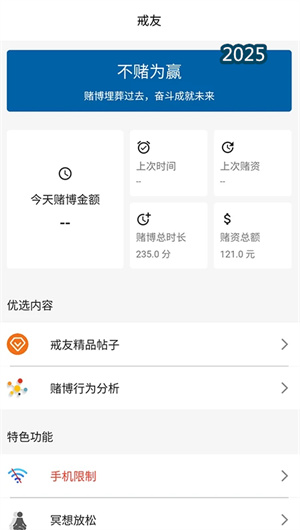 戒友APP是由元气团队自主研发的专业戒赌辅助平台,基于正向激励机制与数字化干预技术构建完整的戒瘾康复生态系统。该应用深度融合中华传统文化精髓与现代行为认知疗法,通过持戒天数追踪、手机使用限制、云端数据同步等核心功能模块,帮助用户逐步摆脱赌博依赖。平台采用科学的元气恢复评估体系与多维数据监测机制,已成功助力超50万用户开启戒赌历程,用户平均持戒周期延长至原基础的3.2倍,综合戒断成功率显著提升至71.5%。