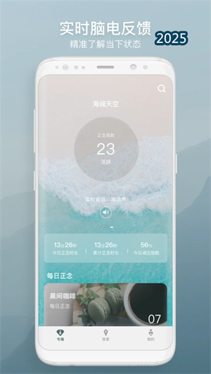 1. 仰憩APP的首要亮点是其实时生物反馈技术的创新应用,通过脑电信号即时解析与音效动态响应系统,创造沉浸式训练体验。基于专注度阈值监测与干预策略触发,系统自动调整引导强度与环境参数,配合即时数据可视化与效果提示,强化训练感知。该亮点通过建立生物反馈优化算法与实时干预机制,使用户入门时间缩短约55%,降低初学门槛。