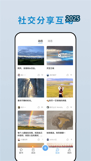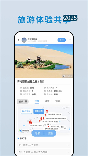 应用支持旅途中实时分享功能,用户可随时上传原创美图、旅行视频和文字见闻,形成动态的旅行时间轴。分享内容自动关联具体路书和地理位置,为其他用户提供最直观的参考。话题讨论区按目的地、活动类型等维度划分,方便用户找到兴趣相投的旅行伙伴,交流旅行经验和心得体会。