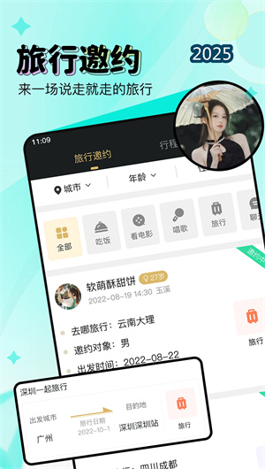 尤伴App是一款专注于旅行交友与陪伴游玩场景的创新社交平台,以"结伴旅行,高效约伴"为核心产品理念,致力于为用户打造真实、简单、高效的社交体验。通过严格的实名认证体系与视频认证流程,平台构建了高品质的真人认证社交圈,确保每位用户的真实性与可靠性。尤伴创新性地将线上社交与线下陪伴游玩深度融合,涵盖同城约会、结伴旅行、陪伴用餐等多维社交场景,目前平台已汇聚超过百万热爱生活与旅行的优质用户,日均成功匹配陪伴行程超万次,成为旅行社交领域的领军品牌。