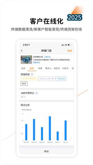3. 勤策APP建立智能的终端门店管理体系,通过门店档案和分级管理实现对终端网络的精准覆盖。系统提供门店巡检和陈列检查功能,支持销售数据采集和动销分析。该特色还包含门店服务和问题处理,帮助销售团队提升终端服务质量,增强门店合作黏性。