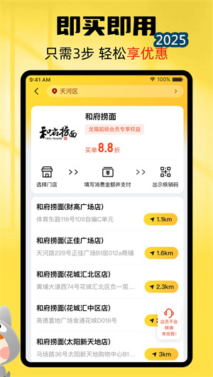 2. 平台构建了完善的到店优惠体系,整合2000余家合作门店的折扣信息,用户可通过门店筛选与距离排序快速定位心仪餐厅。系统提供在线买单与优惠验证服务,支持折扣计算与实付显示功能,最低可享8.8折的专属优惠。该功能还包含预约订座与排队取号等增值服务,全面优化用户的到店用餐体验。