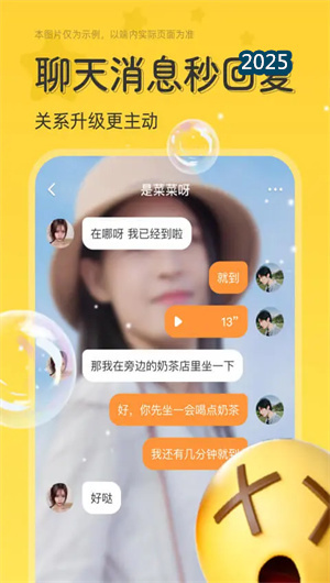 2. 多维互动与关系推进特色:平台提供多元互动通道,包括文字聊天、语音交流、视频通话等多种社交方式,满足用户不同场景下的社交需求。智能破冰系统自动推荐合适的话题开端,关系进展指导提供专业的交往建议,而互动质量评估则帮助用户优化社交表现。这种全维度社交支持让用户告别"处处碰壁"的尴尬,社交自信心显著提升。
