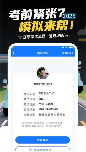 懒人考摩托App是专为摩托车驾考学员打造的2025全新驾考辅助平台,采用智能学习引擎与大数据分析技术构建了集理论学习、模拟考试、技巧训练于一体的全方位备考系统。平台通过云端同步架构与个性化推荐算法,为每位学员定制专属的学习路径与备考方案。其核心的驾考题库管理系统收录了全国统一的摩托车考试题库,并通过智能筛选机制精准提取高频考点,结合记忆曲线理论与自适应学习技术,显著提升学员的学习效率与考试通过率。懒人考摩托App创新性地将枯燥的交规知识转化为生动易记的学习内容,通过多维度的学习数据追踪与智能分析报告,帮助学员科学备考,实现轻松拿证的目标。