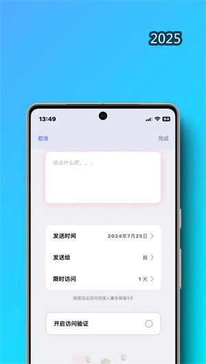 3. 时光信箱功能基于智能时间触发引擎,支持用户创建定时发送的数字信件与媒体包裹。信件编辑系统提供丰富的模板库与个性化定制选项,支持添加附件与交互式内容。发送时间管理系统允许设置具体日期、生命事件或条件触发,确保在特定时刻精准送达指定收件人,让情感传递不受时空限制。