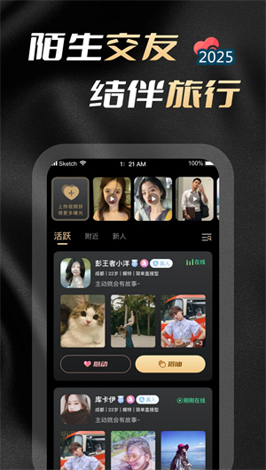花游是一款专注于解决现代单身人群社交需求的恋爱交友平台,致力于汇集最大量的优质单身群体,通过创新的社交匹配机制帮助用户突破生活圈子的限制。在花游的社交生态中,每天都有无数人成功找到那个值得恋爱的人,让男神女神们告别深夜的孤独时光。平台以"一键查找附近的人"为核心功能,结合智能推荐算法与精准的用户画像系统,有效避免用户荒废时间和情感,打造高效、真诚的恋爱交友环境,让每个渴望真爱的灵魂都能在这里找到情感的归宿。