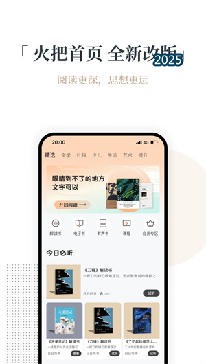 火把知识App是一款以传递有深度有价值的知识内容为核心目标的综合性知识服务平台,致力于在信息爆炸时代为用户解决知识选择焦虑问题。平台通过构建完整的知识生态系统,整合了图书、音频、视频等全媒体形态的知识产品,打造沉浸式知识消费场景。依托强大的内容筛选机制和专业的知识加工体系,火把知识不仅提供海量优质内容,更通过科学的认知路径设计,帮助用户建立系统化的知识结构,满足从基础通识到专业提升的多层次学习需求,成为超过500万用户信赖的终身学习伙伴。