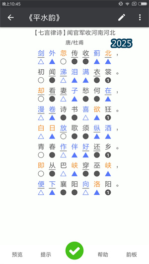 诗词格律App内置强大的平仄检测引擎,能够实时分析用户创作诗句的声律结构。系统采用先进的韵部识别算法,支持《平水韵》、《中华新韵》等多套韵书标准,自动标注拗句和失对等问题。在对仗检测方面,应用提供词性分析和意象匹配功能,帮助用户完善颔联与颈联的工整度,这些专业工具使创作合格率提升达82%。