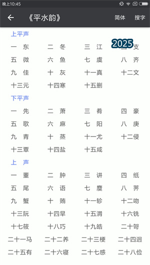 应用整合了历代主要韵书资源,建立了一套完整的声韵查询系统。用户可通过韵目检索、反切查询、同韵字推荐等多种方式,快速定位所需韵字。特别开发的古今音对比功能,清晰展示汉字音韵的历史演变,为古风创作和近体诗写作提供权威参考,极大提升了创作效率。