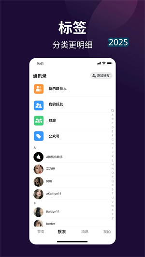 随信打破了传统社交App必须互加好友才能对话的壁垒,创新性地推出了跨平台身份映射系统。用户可以使用其微博、抖音等主流社交帐号一键登录并完成身份绑定,这些经过验证的账号将自动成为用户在随信上的唯一数字名片ID。当想要与某人交流时,无需经历繁琐的好友添加流程,只需找到其对应的数字名片即可直接发起对话。这种设计极大地降低了认识新朋友的启动成本,使社交连接更加高效、直接,用户调研显示,此功能使陌生人成功破冰的概率提升了约40%。