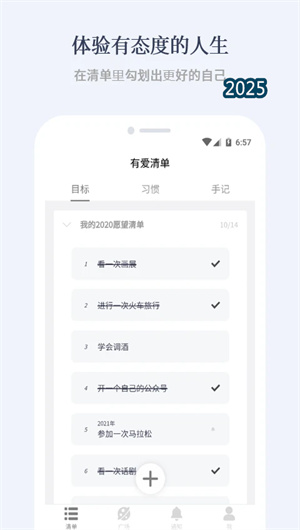 有爱清单App是一款专注于目标管理与梦想实现的创新应用,通过独特的清单体记录方式和科学的打卡机制,帮助用户系统地发现、记录并实现个人愿望清单。该平台以"有人爱,有事做,有所期待"为核心理念,构建了完整的目标发现、习惯追踪与故事记录体系。用户不仅可以创建个性化的梦想清单,还能通过灵感示例获得目标设定的启发,并通过进度管理功能将抽象愿望转化为可执行的具体行动,让每个珍贵的生活期待都能找到实现的路径。