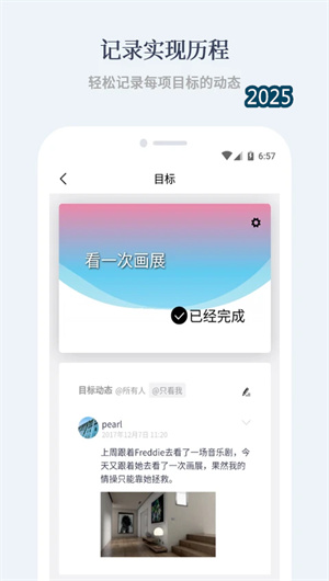 有爱清单创新性地将目标管理与故事叙述相结合,每个清单条目都支持添加丰富的故事记录。用户在实现"阳台花园"愿望时可以记录每株植物的成长故事,在"美食打卡"过程中可以撰写味觉体验,在完成"公众号创作"后可以保存读者反馈。这些记忆碎片通过时间轴串联成完整的人生叙事,形成独特的个人史记,让目标实现过程充满情感温度。