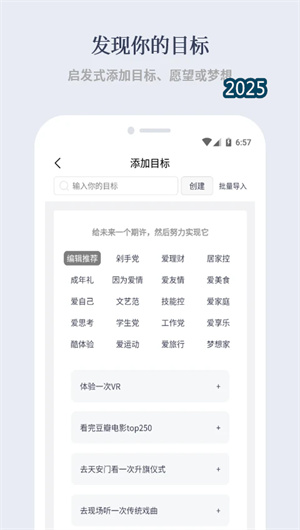 有爱清单App提供直观的清单创建功能,用户可以将抽象的人生梦想转化为具体的目标条目,并通过任务分解将大目标拆解为可执行的小步骤。平台内置丰富的灵感库,包含"城市日出"、"美食探索"、"好友旅行"等数百个示例目标,每个目标都配有详细的实现指南和经验分享。用户可以为每个清单设置优先级和时间节点,系统还会根据目标难度自动推荐合适的执行策略,这种智能规划使目标完成率提升了约48%。