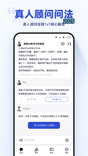 典典App是一款AI驱动的综合性在线法律服务平台,深度融合智能法律检索、真人专业咨询与精准律师匹配三大核心模块。平台构建了完整的法律知识图谱,通过自然语言处理引擎解析用户需求,依托大数据分析系统提供精准解决方案。其特有的律师评级体系与案例匹配算法确保服务专业性,而云端服务中台则保障了全流程的稳定可靠。目前平台已收录数百万条法律条文注解,日均处理法律咨询量突破10万次,成为个人用户与中小企业首选的智能法律伙伴。