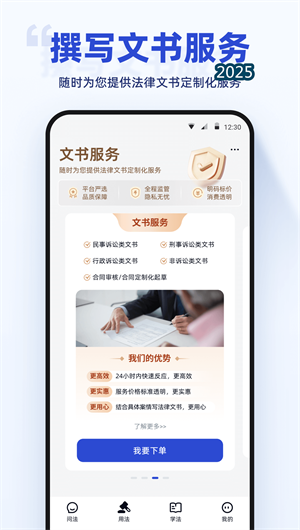 1. 全流程案件管理 创新的案件进度跟踪系统,通过时间轴可视化清晰展示每个阶段。用户可通过文书生成工具快速制作法律文件,利用证据清单管理确保材料完整。系统自动发送节点提醒与时效预警,配合在线庭审辅助功能,使诉讼过程更加从容有序。