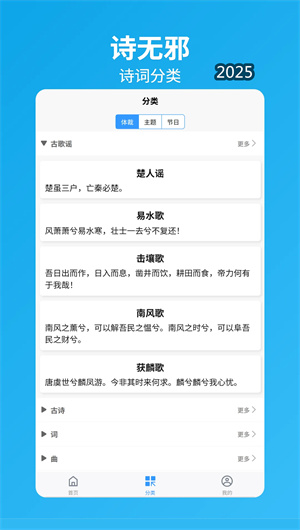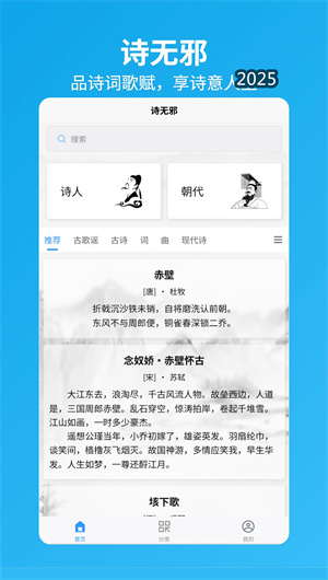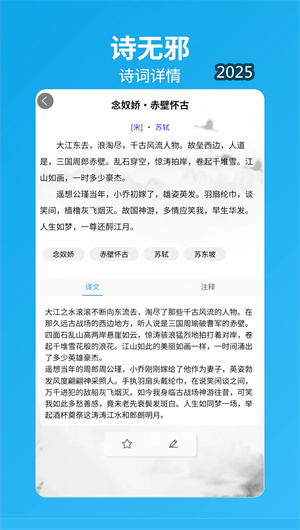 1. 诗无邪的智能检索系统采用多维度查询架构,用户可通过诗人索引库快速定位特定作者的全部生平佳作,结合诗人年谱可视化深入了解创作背景与风格演变;同时支持朝代时间轴筛选功能,从《诗经》的质朴原初到唐诗的雍容华贵,再到宋词的雅致婉约,完整呈现文学发展的清晰脉络,这种立体化的检索方式使诗词发现效率提升约68%。