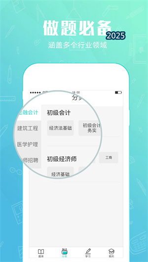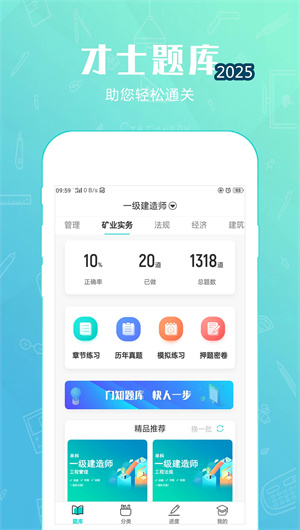 才士题库App是基于"互联网+教育"理念构建的智能化学习平台,通过云端题库架构与多终端同步技术打造了完整的在线教育体系。平台采用全类目覆盖策略整合一建、二建、经济师、医学等核心考试门类,依托智能刷题系统实现章节练习、模拟试卷、模拟考场等多元化学习场景。其核心技术包含个性化推荐算法、学习进度追踪和能力评估模型三大模块,目前平台已建立包含超过50万道题目的全类目题库,日均活跃用户达25万人次,用户考试通过率提升至68.9%,真正实现了"助你轻松通关"的产品承诺。