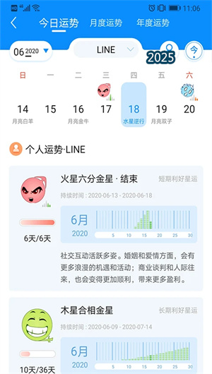 3. 行运追踪特色采用实时天文计算技术开发的个人行运提醒系统,通过主要行运相位监测与关键天象预警帮助用户把握重要周期。该特色创新的行运时间轴可视化展示未来一年的主要行运时点,提供前瞻性的周期规划参考。通过历史行运回溯分析过去重要事件的天象背景,帮助用户理解个人发展规律,深化对占星智慧的认知。
