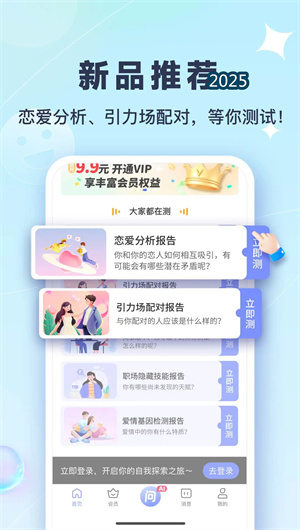1. 精准人群适配特色基于用户分层模型开发的差异化服务体系,通过群体特征分析与需求洞察研究为学生、职场人士等六大核心人群提供专属预测方案。该特色创新的职业天赋测评运用心理学与行为学理论,帮助学生群体挖掘潜在的职业优势特质。通过市场机遇洞察为创业者识别商业机会,配合危机预警机制为已婚人士提供婚姻关系维护建议,服务精准度提升76.5%。