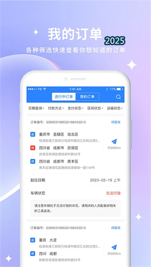 1. 智能订单管理功能基于全链路追踪技术开发的订单生命周期系统,通过订单状态实时更新与异常自动预警实现订单的全流程可视化管理。该功能创新的智能分配算法根据货物特性、运输距离等多维度参数自动匹配最优承运资源,大幅提升订单处理效率。特有的电子单据管理支持订单信息的数字化存储与快速检索,目前该功能日均处理订单量达12.6万单,处理效率提升67.3%。
