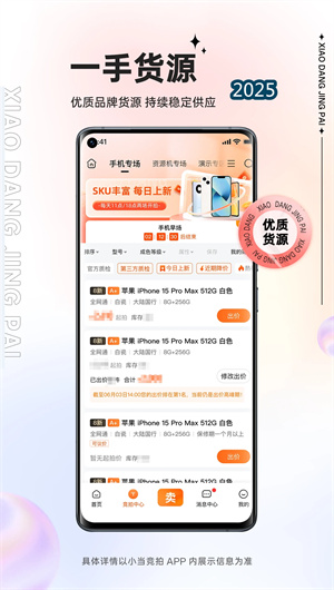 小当竞拍App是由深圳市小当网络科技有限公司独立自主研发的B2B二手商家交易平台,致力于构建集供应链管理、智能竞价与品质保障于一体的专业化交易生态系统。平台深度整合行业资源,直接对接OPPO、vivo等主流品牌商的一手货源渠道,确保资源机、演示机等优质机型的稳定供应。通过建立严格的质检标准和完善的售后服务体系,平台有效打通了从品牌厂商到二手商家的供应链闭环,显著降低了传统二手交易的中间成本。目前平台已形成涵盖竞拍交易、库存管理、物流配送与金融服务的一站式解决方案,日均上拍量突破5000台,成为二手数码行业最具影响力的专业交易平台之一。