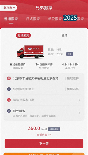 兄弟搬家APP的核心功能是其强大的智能搬家计价引擎。用户只需在APP内输入搬运地址、房屋类型、主要物品清单等基础信息,系统即可基于庞大的兄弟搬家价格模型数据库,在数秒内生成针对“普通搬家”、“日式搬家”、“公司搬家”、“跨城搬家”等不同场景的初步报价方案。对于复杂的公司搬家或跨城搬家需求,用户可一键预约兄弟搬家专业顾问进行免费的线上实勘或现场实勘,获取基于三维空间测算与个性化需求分析的定制化搬家方案与精准报价,确保费用构成清晰明了,从源头杜绝隐性消费,让用户享受真正的“经济高效”与“放心无忧”。