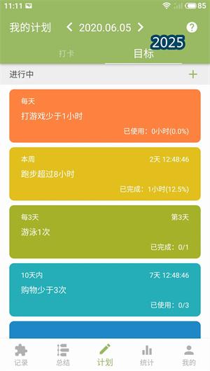 面向未来规划,块时间APP的 “计划模块” 采用了直观的卡片式计划制定形式。用户可以创建以周、月或自定义项目为周期的计划卡片,在卡片上清晰地列出目标、待办事项及预估的时间块分配。这些计划卡片会醒目地展示在时间轴上,如同路标, “为每一天的自己加油” ,提供明确的行进方向。而 “统计模块” 则负责对过去进行量化的审视。它能自动汇总和分析用户在指定周期内,在不同活动类别上所花费的时间块总数及占比,并以饼图、柱状图等可视化图表清晰展示时间分配详情。用户可以轻松看到时间流向,方便进行回顾总结,找出时间浪费点或优势投入领域,为下一个周期的计划优化提供坚实的数据支持。