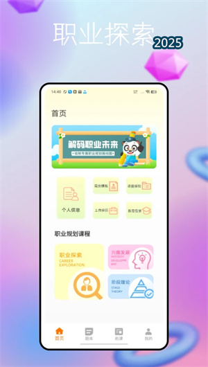 云端App是一款致力于赋能个体职业发展与终身学习的智能化生涯规划平台,它以 “规划职业学习,探索未来可能” 为核心理念,为用户构建了一个集职业认知探索、兴趣潜能评估、系统知识学习与发展路径规划于一体的综合性数字化解决方案。本应用深度整合了现代职业生涯发展理论,通过职业发展阶段性理论框架,引导用户科学认知职业成长规律。其内容体系丰富多元,涵盖对数百种职业的深度职业探索解析、基于权威量表的职业兴趣测评,以及对行业发展趋势的宏观洞察。云端App独创的 “职业题库” 与 “刷课板块” ,将理论学习与实战应用紧密结合,帮助用户从认知、技能到决策,全方位构建清晰的职业图景。借助先进的个性化推荐算法与学习路径规划引擎,云端App能够基于用户的行为数据与测评结果,生成定制化的成长方案,旨在帮助每一位用户更清楚地认识自我,更了解未来可能的职业方向,从而在充满变化的时代中,主动规划,稳健成长,实现个人职业价值与兴趣发展的和谐统一。