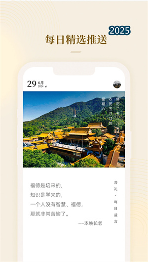 结语:菩礼App通过深度融合东方智慧与现代科技,构建了集美学、修行、社群于一体的数字禅意生态系统。从智能的金句推荐系统到沉浸的AR禅修空间,从纯粹的无广告设计到系统的成长追踪工具,每个功能模块都体现了“让修行融入生活,让智慧触手可及”的产品哲学。随着情感计算技术的持续突破与禅意美学生态的不断完善,菩礼正在重新定义数字时代的修行方式,为用户提供从日常正念到深度禅修的完整成长路径,让每个人都能在纷繁世界中找到内心的宁静与智慧。无论您是寻求片刻安宁的都市人,还是探索生命深度的修行者,都能在菩礼找到适合自己的精神家园,在数字时代续写东方智慧的当代传承。