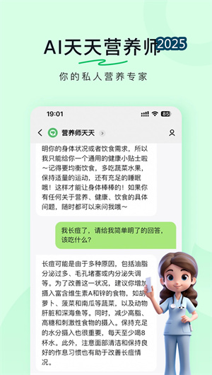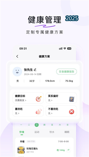 1. AI营养师系统采用先进的机器学习算法与营养学数据库相结合,为用户提供个性化的健康饮食规划服务。用户通过每日健康数据记录功能输入身高、体重、运动量及健康状况,系统自动计算基础代谢率并推荐合理的每日热量摄入范围。基于用户的健康目标设定(如减重、增肌、控糖、调理等),AI营养师会智能生成定制化的三餐搭配方案,每餐都包含详细的营养成分分析和食材替代建议。系统还设有健康知识库,每天推送与用户目标相关的营养小知识,帮助用户建立科学的饮食观念,真正实现“让每一个人吃的更好更健康”的平台使命。