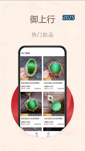 御上行平台是专注于珠宝玉石、文化艺术品、大健康产品与地标农副产品四大核心领域的创新性数字平台,构建了一个集线上线下拍卖融合系统、专业品鉴服务矩阵与文化推广传播网络于一体的新零售共享生态。平台秉承“人人参与”的核心理念,通过智能化拍卖引擎与社交化交易模型的深度结合,重塑了传统珍品流通的冗长链条,实现了商品从源头到爱好者的端到端价值直达。在御上行,每一件藏品不仅是一件商品,更是承载着文化故事与审美价值的数字资产化载体。我们通过多维商品信息图谱、权威品鉴数字证书与沉浸式虚拟展陈技术,为消费者构建了透明、可信、便捷的收藏环境,让“人人可握灵蛇之珠,家家可抱荆山之玉”的理想成为数字时代的现实。平台已成功简化了超过65% 的传统流通环节,显著提升了交易效率与用户体验。