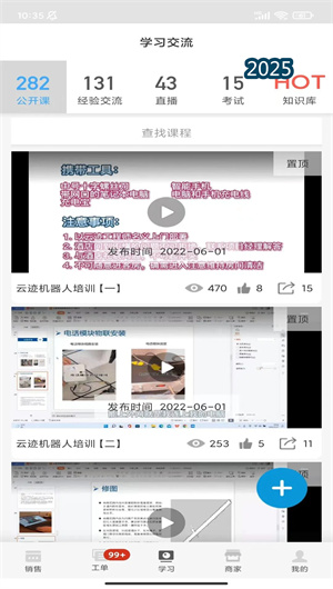 为助力工程师应对日新月异的智能设备技术,平台构建了多维度的 “在线视频交流学习” 生态系统。平台设有 “课程学习” 中心,提供由平台与设备厂家联合制作的各类设备(如LED屏、智能收银机、高尔夫模拟器)的安装、调试、维修系列视频课程。定期举办 “厂家直播培训” ,让工程师能与技术专家实时互动。庞大的 “知识库查询” 系统,收录了常见故障代码、设备参数、接线图等实用资料。此外,活跃的 “经验交流” 社区鼓励工程师分享实战案例、技术难题与解决方案,形成了一个互助成长的同行专业社群,使得工程师技能持续迭代。