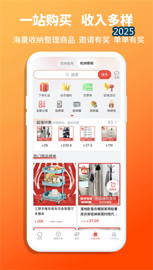 为消费者提供便捷、可靠的收纳服务获取入口是平台的基础功能。用户可通过APP清晰描述收纳需求(如衣橱整理、全屋规划、亲子空间改造等),浏览并比较不同收纳师的资质与案例,进行在线预约与咨询。服务过程中,用户可通过APP与收纳师沟通方案细节。更重要的是,平台整合了生态内生产厂家的优质收纳产品(如收纳盒、衣柜分隔件、标签机等),在服务方案中直接嵌入 “产品推荐清单” ,用户可一键加购,实现 “服务+产品” 的无缝衔接,获得完整的收纳解决方案。服务完成后,用户可进行评价与分享,形成口碑循环。