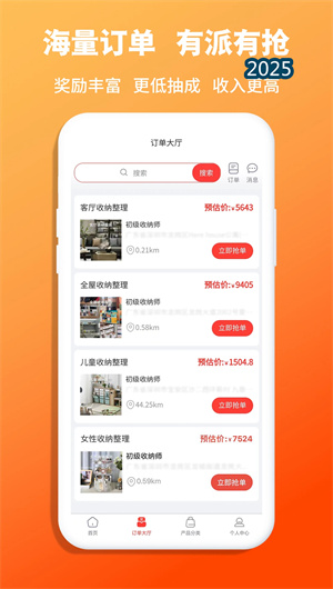 对于平台核心用户——职业收纳师,APP提供全方位的职业赋能工具。收纳师可创建并完善个人主页,展示其服务案例、技能认证(通常由合作的收纳培训机构颁发)、服务报价及用户评价。平台基于智能派单算法与地理位置服务,将消费者的整理需求订单,精准推送给符合条件的收纳师,实现高效客源对接。同时,APP内置 “服务项目管理” 模块,帮助收纳师规划上门流程、记录客户需求、管理服务日程与结算。收纳师还可通过平台持续接入由培训机构提供的进阶线上课程,不断提升专业能力,构建个人品牌。