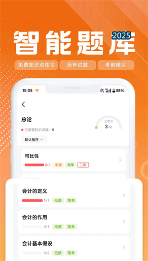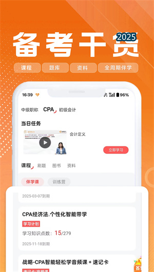 高顿会计App构建了结构严谨的 “学-讲-练”一体化学习体系。针对CPA六科(会计、审计、财管、税法、经济法、战略)、中级会计三科及初级会计两科等核心考种,平台提供由一线名师团队录制的高清精讲视频课程与重难点直播串讲。课程严格依据官方最新考试大纲研发,并配套详实的电子版讲义与知识脉络图。对于CMA等国际证书,提供双语教学资源与全球视野案例分析。学习系统支持倍速播放、知识点标签跳转与学习进度云端同步,用户可根据个人基础灵活安排学习路径,实现从会计理论到会计准则应用的深度学习。