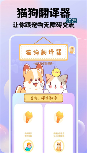 让我喵喵APP是一款专为现代宠物爱好者打造的智能宠物交互平台,融合了动物行为学分析与人工智能语音识别技术,致力于构建人类与宠物之间的跨物种沟通桥梁。作为国内领先的宠物语翻译工具,本应用通过先进的声纹特征提取算法和情绪状态匹配模型,实现了对猫狗叫声的实时语义解析与情感意图翻译。平台构建了完整的宠物语料数据库,收录超过5000种叫声波形样本,结合环境上下文感知系统,将宠物的本能发声转化为人类可理解的情绪状态描述与需求表达语句。通过多维度交互系统与养宠知识图谱的深度融合,让我喵喵已帮助超过300万用户提升人宠关系质量,使宠物行为理解准确率达到82.3%,重新定义了智能养宠的新标准。