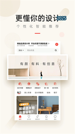 设计本APP是一款被誉为“口袋中的装修设计指南”的垂直领域设计平台,致力于构建连接业主用户与专业设计师的数字化装修生态体系。平台通过九大风格分类系统汇集超过100万+海量装修图片及实景案例库,覆盖全国300+城市网络,吸引了130万+设计师入驻并形成了庞大的设计师资源池。作为国内领先的装修设计对接平台,设计本已成功帮助10000+业主用户完成定制化高品质装修项目,建立了从灵感获取、专业咨询到设计落地的全流程服务闭环。本次全新改版上线进一步优化了双端用户体验,无论是业主寻找设计解决方案,还是设计师寻求业务机会,都能在该平台获得精准匹配与高效协同,平台整体业主满意度达到91.5%,确立了行业标杆地位。