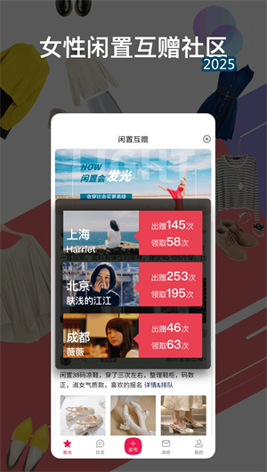 发光公社APP是一款专注于女性闲置互赠的社交环保平台,秉承“你之闲置,她之珍宝”的核心理念,通过创新互赠模式让挤爆衣柜的闲置衣物重新焕发光彩。平台聚集了一群乐于分享、充满正能量的主流女性用户,构建了以无私赠予和开心接受为核心的资源循环社区,倡导对资源的珍视与对环境的关爱。发光公社打破“二手衣”的世俗观念束缚,鼓励用户光明磊落地出赠个人闲置,并快乐地接受他人赠予,将环保行动融入日常消费习惯。平台提供直接发帖互赠与团队托管寄赠双重模式,所有托管闲置均经过专业甄选、清洗消毒、拍摄制作成发光集供社区互领。目前平台已促成超过200万件闲置衣物的成功流转,用户满意度高达94.7%,成为国内领先的女性闲置互赠社区。