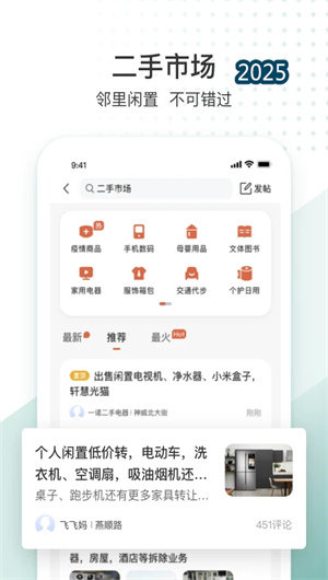 生活圈的核心是强大的同城信息聚合门户,它为用户提供一站式的信息发布与浏览体验。在二手闲置频道,用户可利用智能拍照识物功能快速发布商品,并借助平台内置聊天工具与买家直接沟通,交易过程受第三方诚信担保机制保护。在租房与求职模块,信息均通过AI辅助真实性核验系统进行初步筛选,并结合地图找房/找工可视化界面,让用户能直观地根据位置筛选机会。所有信息流均遵循个性化推荐排序算法,确保用户优先看到最相关、最优质的内容。