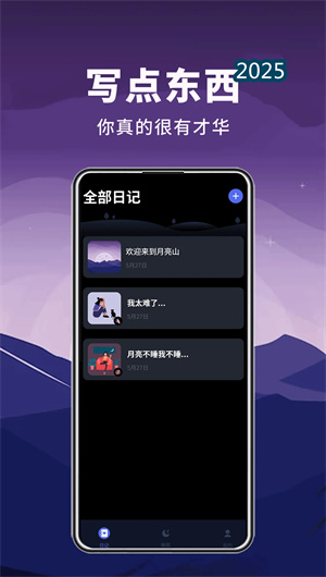 月亮山APP是一款专注于睡前情绪管理与心灵抚慰的数字化睡前日记本,旨在为用户打造一个私密、温暖、具有仪式感的夜间心灵栖息地。本应用以“释放心中阴霾,敞开心扉”为核心设计理念,引导用户在一天结束之际,通过结构化的记录流程,梳理当天的生活状态,回顾新鲜事,沉淀生活感悟,从而完成一次温柔的心理释放与自我对话。月亮山通过精心设计的四大核心交互模块——选择心情、写点东西、导出词语、准备入眠——将传统的日记书写升华为一场通往内心平静的沉浸式旅程。在这里,用户可以在完全属于自己的小世界里自由遨游,留下你的故事,并以积极的心理暗示迎接睡眠,最终 “遇见一个美梦” 。月亮山致力于成为数百万用户枕边的数字知己,陪伴他们告别日间纷扰,收获安宁夜晚。
