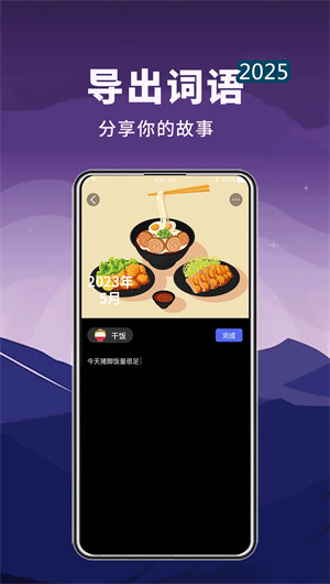 在用户完成日记书写后,月亮山的 “智能语义分析引擎” 开始悄然工作。它会快速扫描日记内容,识别其中的核心情绪、关键词及潜在压力点。随后,在 “导出词语” 环节,系统会从日记中萃取出3-5个最具代表性的关键词(如“突破”、“温暖”、“释然”),并以优美的艺术字体卡片形式呈现。更重要的是,系统会根据整体情绪基调,自动生成一句如 “你真的很有才华” 般的、高度个性化的积极肯定语或暖心小结。用户可以选择将这些词语卡片与肯定语保存、设为屏保,或一键分享你的故事(脱敏后)至社区,完成从私人记录到温和分享的转化。