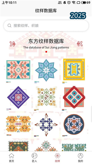 东方织娘APP内置强大的纹样采集工具,用户可通过手机摄像头对实物(如织物、器物、建筑构件)上的纹样进行拍摄,系统利用高精度图像识别与智能矢量描摹算法,自动提取纹样轮廓,生成可编辑的矢量纹样文件。对于文献资料,平台提供文献扫描增强与线稿提取功能,将古籍、图谱中的纹样转化为数字资产。所有采集的纹样均进入统一的纹样元数据库,并依据纹样分类体系(如几何、植物、动物、吉祥寓意等)、民族属性、历史年代、工艺载体等维度进行结构化标签,形成可检索、可追溯的数字化纹样档案,为深度研究与创新应用奠定坚实基础。