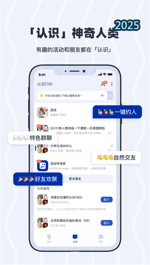 认识APP最显著的特色在于其将“活动”本身设计为最核心的社交场景和连接介质。传统的社交应用往往从“人”出发,容易陷入空洞的聊天;而认识APP则从“事”(共同感兴趣的活动)出发,为用户提供了丰富、具体、有即时性的社交话题和见面理由。无论是展览市集的审美共鸣,还是运动户外的协作乐趣,都为 “自然交友” 创造了绝佳条件。这种 “场景先行” 的设计,极大地提高了社交的有效性和成功率,使得线上互动能够顺畅、无压力地转化为线下的真实见面与好友欢聚。