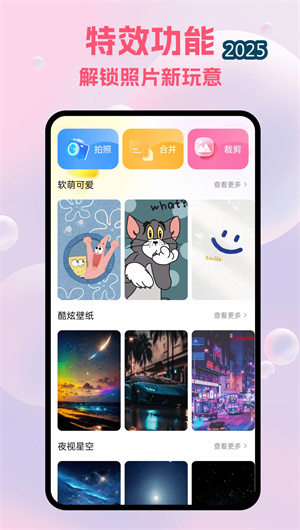 彩彩多多的核心竞争力之一在于将诸多专业桌面端的图像处理功能,通过移动端轻量化引擎完美实现。其精准裁剪工具支持网格辅助与黄金比例参考线;多模板拼图不仅提供布局模板,还允许用户自定义边框粗细、颜色及背景。滤镜系统更包含针对人像、风景、静物等不同场景的优化预设。这些工具虽功能强大,但交互设计极其简洁,通过手势操作优化与上下文提示,让普通用户也能轻松完成专业级的图像编辑,满足了用户对屏幕美化的深层定制需求。